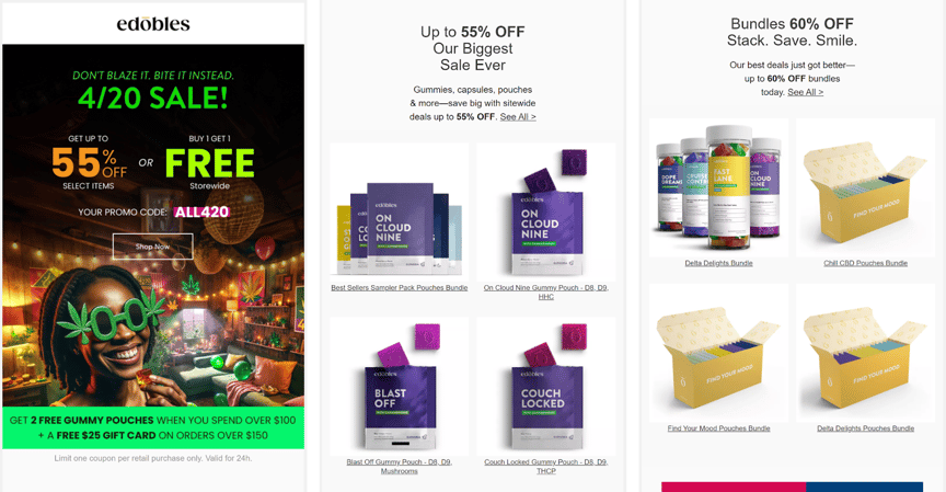 For instance, given that 4/20 in 2026 falls on a busy Monday, we predict strong demand for pre-rolls, vapes, and edibles – so make sure to sufficiently advertise them in your emails.