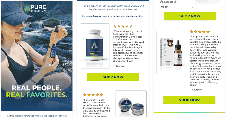 If you have a high number of branded SKUs or even better, clear segmentation based on product preferences, you can send highly targeted emails to smaller groups of people – flower buyers get the flower email, edible enjoyers get the edibles email, and so on.
