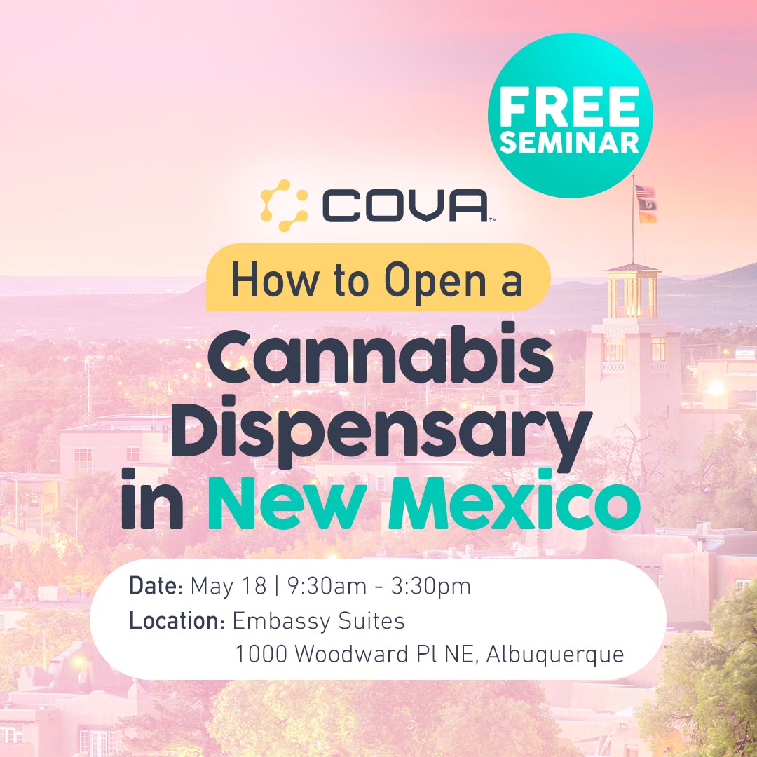 Join Cova for a FREE one-day cannabis industry seminar designed to help you navigate the process of opening a cannabis dispensary in New Mexico. With sessions covering everything from startup advice, compliance tips, and operational best practices, this seminar is a great opportunity for entrepreneurs to learn from the experienced team at Cova and discover the steps that industry professionals have taken to launch successful dispensaries.